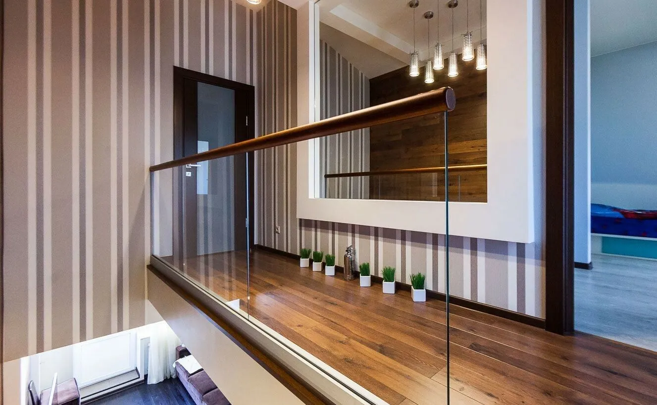 Стеклянные ограждения с деревянным поручнем — это современное и эстетичное решение, которое сочетает в себе прочность стекла и теплую текстуру дерева.