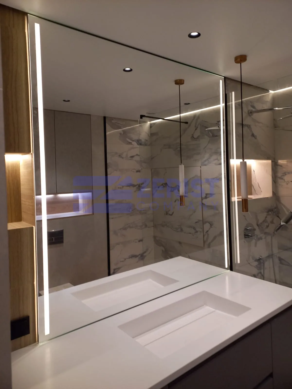 Заказчик был очарован черной фурнитурой, она придала изделию стильный и современный вид, который идеально вписался в интерьер их ванной комнаты. Вдохновленные увиденным, они решили дополнить оформление ванной комнаты и заказали у нас также зеркала с подсветкой.Эти зеркала с подсветкой привнесли в комнату новый свет, создавая уютную и современную атмосферу. Комната буквально засияла новыми красками, и заказчик остался в восторге от результата. Он поблагодарил нас за качественную и оперативную работу.