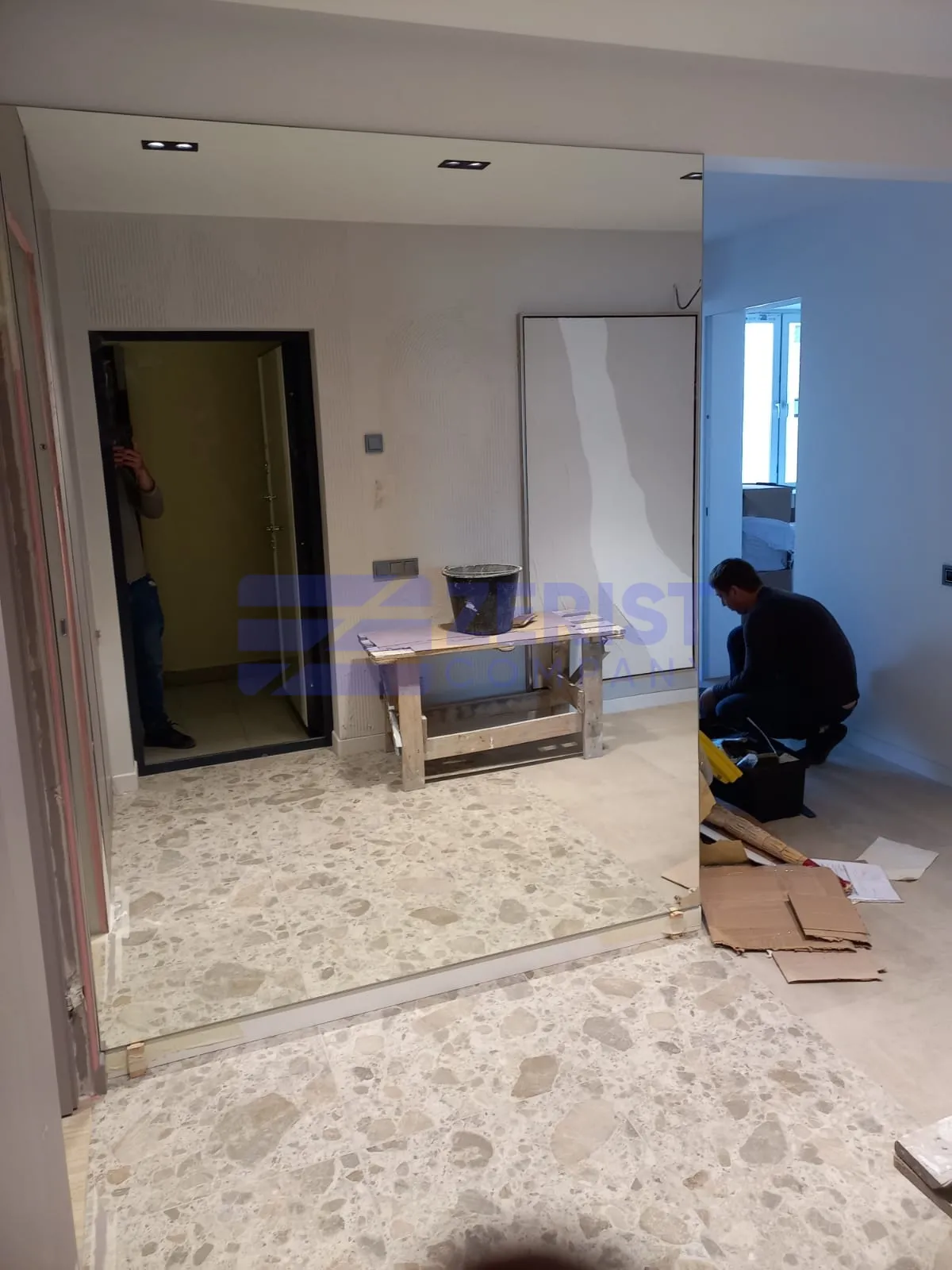 Изготовить и установить шторку в душевую из стекла и зеркала.