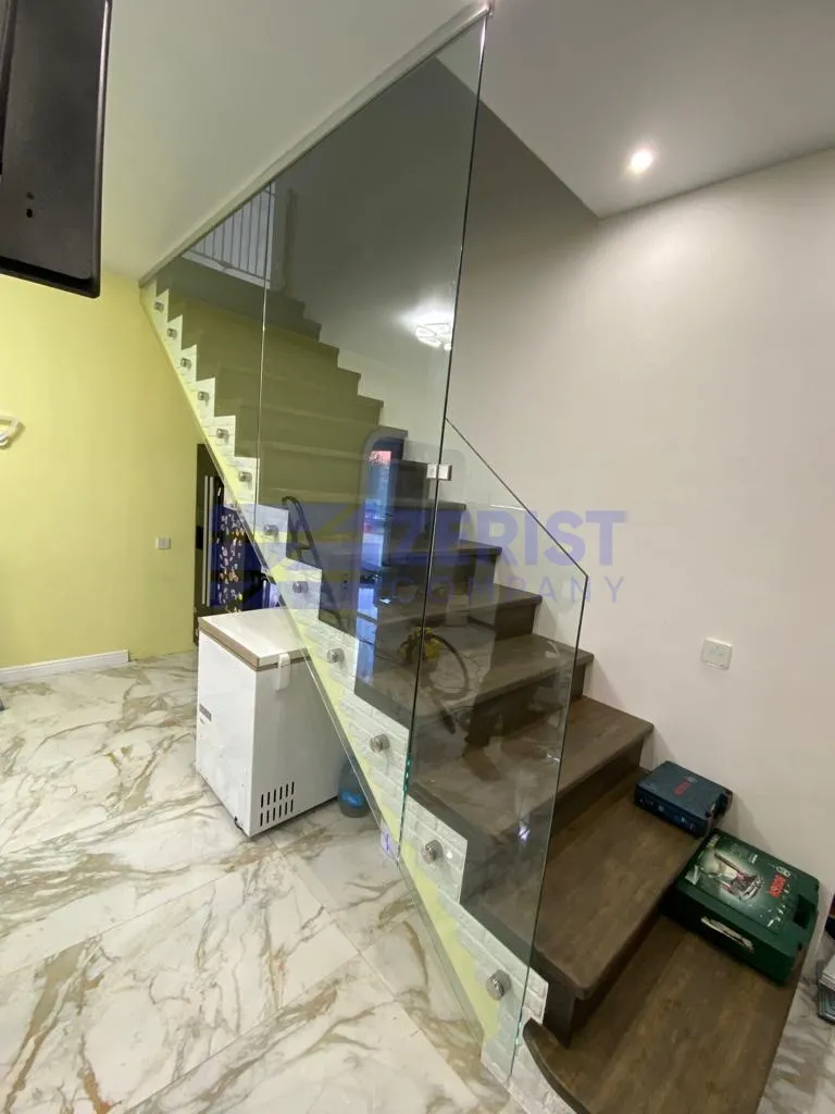 Клиент пришел к нам именно с таким запросом, что нужно сделать лестницу безопасной для малыша и чтобы родители были спокойны. Мы предложили сделать застекленное ограждение лестницы. Совместно с клиентом решили сделать его прозрачным, толщиной 10 мм, чтобы было видно что происходит и полностью безопасно.