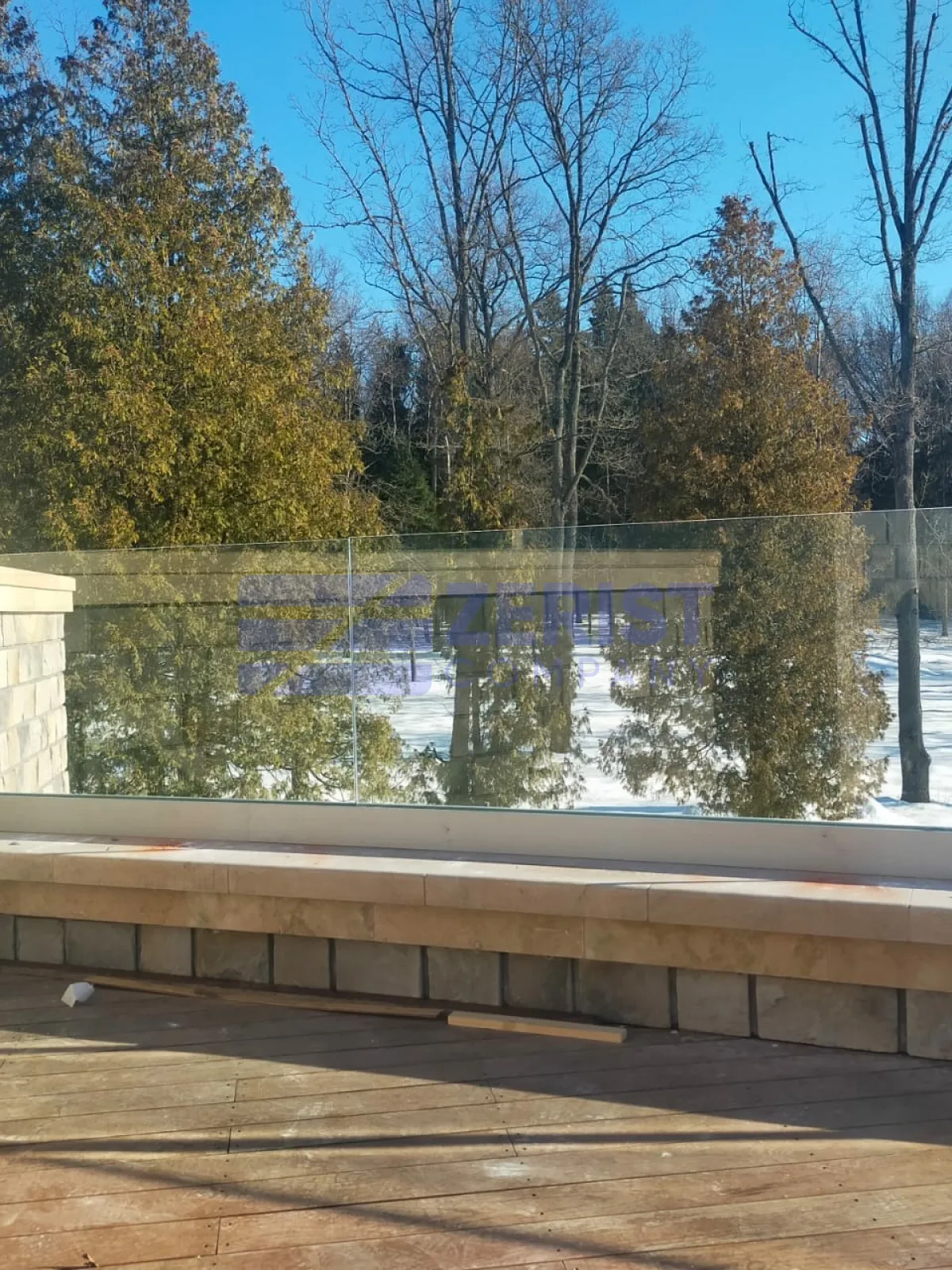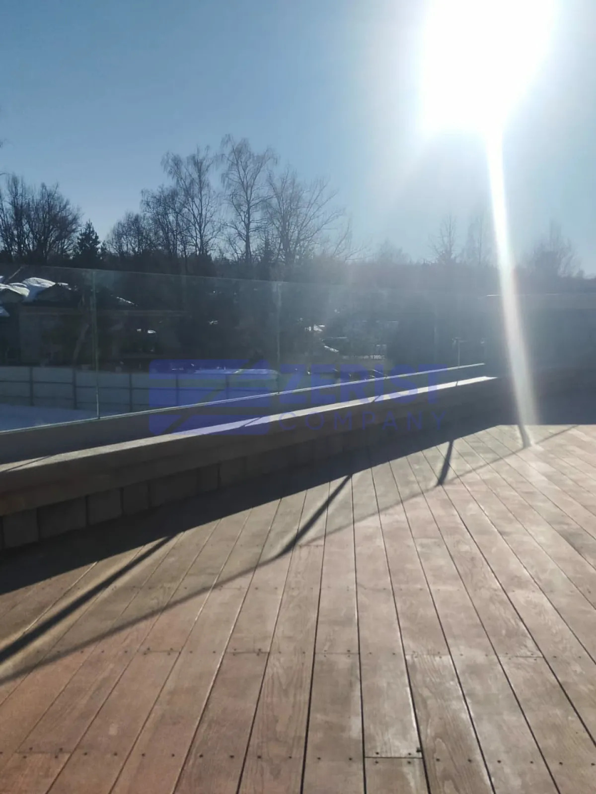 Ограждение из стекла выполнено из стекла с высокой прочность, создает стильный вид и уют.