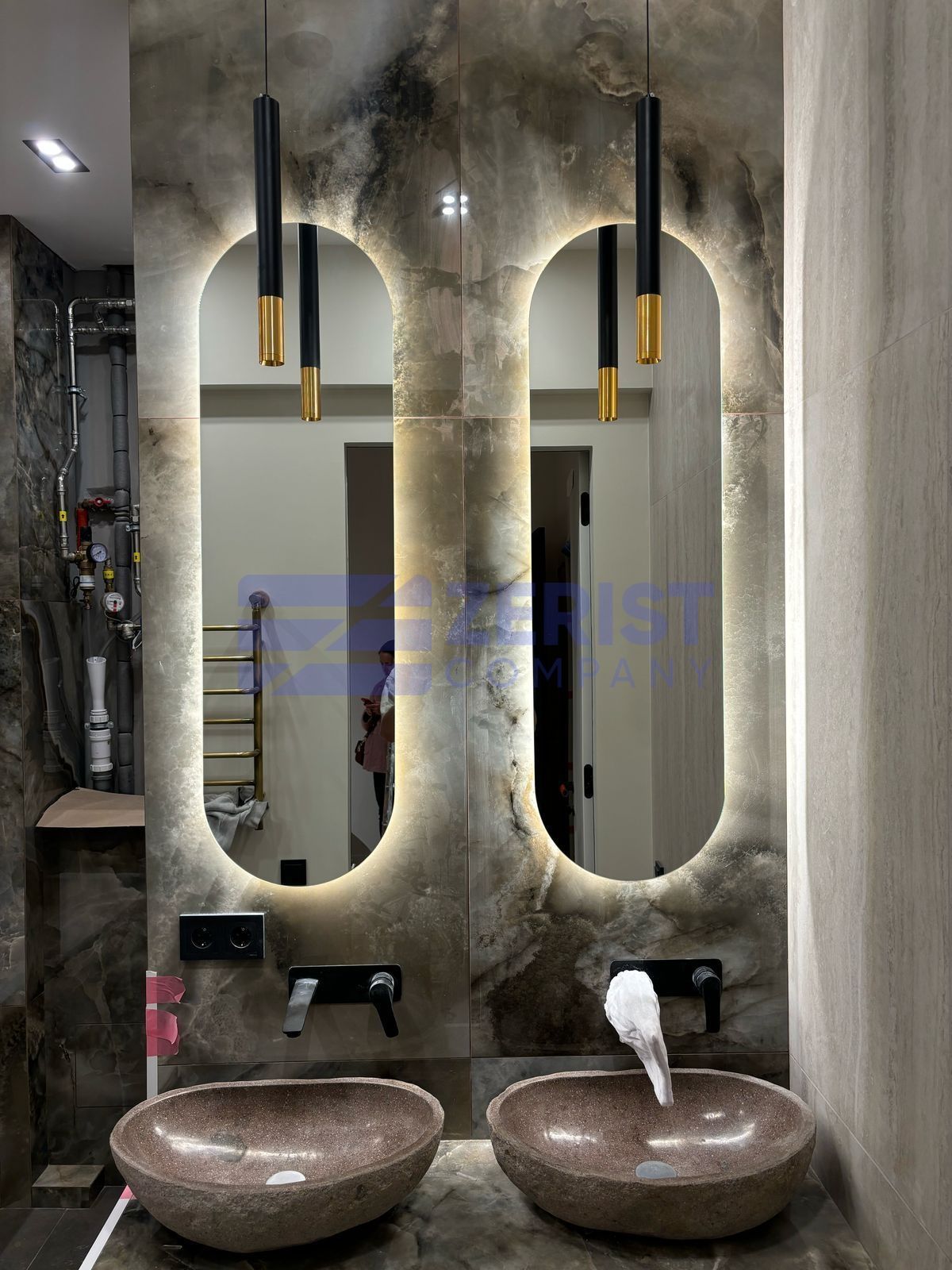 Эти зеркала не только функциональны, но и добавляют элегантности в интерьер, создавая эффект визуального расширения пространства и гармонично дополняя освещение помещения.